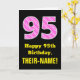 Carte 95ème anniversaire : Pink Stripes and Hearts "95"