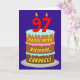 Carte 97e anniversaire : Gâteau et bougies amusants + No