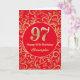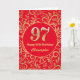 Carte 97e anniversaire Motif Floral rouge et or