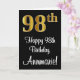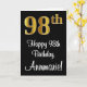 Carte 98e anniversaire ~ Elégant Luxueux Faux Gold Look