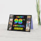 La façade de cette carte de voeux audacieuse et amusante d'anniversaire comporte le message "HAPPY 98TH BANTHDAY", avec un motif dégradé multicolore inspiré du spectre arc-en-ciel, ainsi qu'un nom de destinataire modifiable. Les photos à gauche et à droite du message à motif arc-en-ciel sur le devant de la carte peuvent être personnalisées, peut-être avec des photos du destinataire, de la famille et des amis du destinataire, et/ou de l’expéditeur de la carte. L'intérieur a un message de voeux d'anniversaire personnalisable, ou peut-être peut-être être effacé et laissé vide si un message doit être écrit à la main à la place. Une carte de voeux d’anniversaire joyeuse et personnalisable comme celle-ci pourrait être envoyée pour célébrer le quatre-vingt-dix-huitième anniversaire de quelqu’un. (Photographie © Storytree Studios, Stanford, CA.) [~Z0000667]