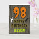La façade de cette carte de voeux Hallowe'en éffrayante et effrayante à thème d'anniversaire comporte un grand numéro "98" et le message "HAPPY BANTHDAY,", ainsi qu'un nom personnalisé. Il y a aussi des représentations d'une chauve-souris et d'un fantôme sur le devant. L'intérieur comporte un message d'anniversaire personnalisé, ou pourrait être effacé et laissé vide si un message doit être écrit à la main à la place. Une carte d’anniversaire personnalisée comme celle-ci pourrait être une façon amusante d’envoyer un message pour célébrer le quatre-vingt-dix-huitième anniversaire de quelqu’un qui tombe aussi à Halloween (31 octobre). [~Z0000410]