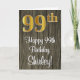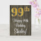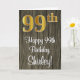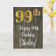 Ce design sophistiqué, luxueux et élégant de carte de voeux d'anniversaire comprend un grand numéro ordinal "99ème" avec un motif dégradé imitation/faux d'inspiration or, plus le message de voeux d'anniversaire "Happy 99ème anniversaire", et un nom personnalisable dans une police de style script sur le devant. L'arrière - plan du devant a un motif d'inspiration imitation bois. L'intérieur a un message de voeux d'anniversaire personnalisé, ou peut-être peut-être être effacé et laissé vide si un message doit être écrit à la main à la place. Une carte de voeux customisée comme celle-ci pourrait être envoyée pour célébrer le quatre-vingt-dix-neuvième anniversaire de quelqu’un. [~Z0000519]