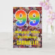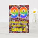 La face avant de cette carte d'anniversaire colorée, rustique et inspirée de la nature présente un grand nombre "99" avec un motif dégradé de spectre arc-en-ciel. Elle comporte également le message "Joyeux 99e Anniversaire" et un nom personnalisable. Le fond de la face avant de la carte présente un motif rustique de feuilles d'automne tombées. L'intérieur comporte un message de vœux d'anniversaire modifiable, ou pourrait éventuellement être effacé et laissé vierge si un message doit être écrit à la main à la place. Une carte d'anniversaire personnalisée comme celle-ci pourrait être un moyen amusant d'envoyer un message pour célébrer le quatre-vingt-dix-neuvième anniversaire de quelqu'un.