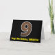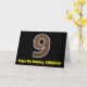 La façade de cette carte de voeux rustique et amusante d'anniversaire avec un grand numéro "9" avec un faux motif à grain de bois, avec le message "Happy 9th Birthday," et un nom personnalisé. L'intérieur comporte un message de voeux d'anniversaire personnalisé, ou peut-être pourrait-il être effacé et laissé vide si un message doit être écrit à la main à la place. Une carte d’anniversaire personnalisable comme celle-ci pourrait être une façon amusante d’envoyer un message pour célébrer le neuvième anniversaire de quelqu’un. [~Z0000431]