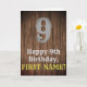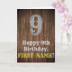 Cette carte de voeux inspirée de l'Ancien Ouest américain et à l'allure campagnarde est décorée d'un grand numéro de look rustique "9", du message "Happy 9th Birthday", un nom personnalisé, et d'un faux/imitation grain de bois inspiré d'un arrière - plan motif. L'intérieur a un message de voeux d'anniversaire customisé, ou peut-être peut-être être effacé et laissé vide si un message doit être écrit à la main à la place. Une carte de voeux d'anniversaire modifiable comme celle-ci pourrait être une façon amusante de livrer des voeux d'anniversaire à quelqu'un qui célèbre son neuvième anniversaire. [~Z0000469]