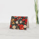 Cette carte de papier à lettres horizontales personnalisable est disponible en 2 tailles et présente votre nom dans un magnifique script sur une plaque rouge vif, contre une illustration florale vibrante, dramatique, rouge et crème sur un arrière - plan foncé La couleur intérieure de cette carte de papier plié est un rose clair et solide.