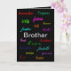 La carte "A Brother's Birthday I" est une carte de voeux unique et festive pour la famille et les amis ! Le texte élégant du mot "Frère" affiché dans différentes langues et couleurs est magnifiquement mis en évidence par un arrière - plan noir basique. Et si vous le souhaitez, vous pouvez facilement personnaliser l'avant et l'intérieur de la carte en ajoutant vos propres mots, topographie, couleurs et images !