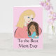Cette carte indique "Au meilleur maman jamais" sur le devant, et "Bonne fête des mères !" à l'intérieur. Sur la couverture apparaît une mère blonde avec une fille biraciale qui a des cheveux brun foncé bouclés.