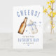 Une carte 'TCHIN !' adorable pour notre première fête des pères. Cette carte de vœux mignonne présente des illustrations ludiques à l'aquarelle d'une bouteille de bière et d'un biberon qui trinquent, nichées parmi de doux cœurs bleus. Personnalisée avec le nom de votre enfant, elle marque le lien indéniable entre un nouveau papa et son bébé. Parfaite pour rendre la fête des pères d'un nouveau papa encore plus spéciale !