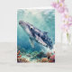 A oceanic themed birthday card with a nautical poem inside. The front has a beautiful illustration of an impasto style whale swimming deep in the sea by vibrant colorful coral.