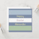 Pâques horizontales bleu clair, vert clair et bleu poussiéreux rayé motif et texte personnalisable : Bonne Pâques. Cliquez sur Modifier pour modifier le texte et le nom à votre goût,