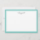 Nos cartes à plat personnalisées et chic sont dotées d'une bordure bleu-vert turquoise et vibrante avec votre nom ou monogramme qui suit le dessus en lettres modernes gris-fusain foncé. Côté inverse, on découvre un motif en treillis moderne dans l'aqua et le blanc assortis.