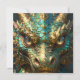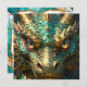A notecard with an illustration of a gold and turquoise metallic looking dragon. Cool gold accents on the back.