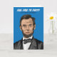 Une carte d'anniversaire à thème politique montrant le président américain Abraham Lincoln sur un arrière - plan bleu avec le message "N'hésitez pas à faire la fête. C'est ton anniversaire !