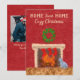 Souhaitez à votre famille et à vos amis un Noël chaleureux et confortable avec cette carte de voeux qui comprend une cheminée sur un mur en brique rouge avec des bas, une couronne et un chat kitty gris. L'illustration de style bloc abstrait donne à cette carte de vacances une sensation chaleureuse et expressive. Tout le texte peut être personnalisé avec votre propre messagerie. Vous pouvez ajouter votre photo et votre salutation au dos. Vous pouvez également cliquer sur "customiser plus loin" pour retirer la photo.