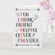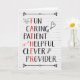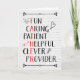 Carte de fête des pères pour papa avec des mots descriptifs, y compris le plaisir, attentionné, patient, serviable, intelligent, fournisseur, avec certaines lettres qui épellent "PÈRE" Carte a affligé arrière - plan en brique blanche et lapin, coeur, flèche et ampoule doodles. Changez le verset intérieur, si vous voulez.
