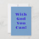 Cette carte de voeux a une police d'impression noire en hatton avec des lettres bleues avec le verset de la Bible Actes 10:7 KJV sur une image arrière - plan montrant un ciel bleu nuageux avec le soleil brillant à travers les nuages créant un look et des rayons de soleil double couleur. Ce verset fait référence au 10e chapitre du Livre des Actes qui montre le 7e verset de cette Bible, citant le thème de la bible du roi Jacques avec les mots "Avec Dieu, tu peux !" sur le dos. Fabriqué avec une impression couleur pleine qualité sur un papier mat de 3,5 po x 5 po (portrait) ou de 5 po x 3,5 po (paysage) fabriqué et imprimé aux États-Unis.