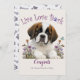 Célébrez la joie d'un nouveau membre à fourrure de la famille avec la carte d'adoption florale pour chien ! Ce magnifique design à l'aquarelle présente un adorable chiot entouré de fleurs vibrantes - parfait pour tout amateur de chiens. Le message joyeux « Vive l'amour et les aboiements » est sûr d'illuminer la journée de n'importe qui.