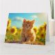 Carte Adorable chaton roux dans un champ de tournesols