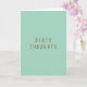 This greeting card keeps things simple with the words “DIRTY THOUGHTS” placed right in the center. The text is written in warm brown, with a hand-drawn look and slightly uneven lines that feel personal and a little cheeky. The letters are all caps and look like casual block lettering rather than fancy script. Behind the words is a flat mint green background with no other objects, characters, or scenery. The contrast between the calm green and the teasing message gives it a flirty, funny tone that still feels lighthearted. With nothing else on the card, your eyes go straight to the message, like a private note meant for someone special. It’s a great pick for a partner or close friend who enjoys a bit of humor with their Valentine’s Day card ❤️