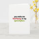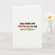 In this beautiful image of a Valentine's Day card, you'll find a simple yet powerful message that speaks volumes. The card's background is pure white, making the words stand out boldly. Right in the center, the phrase 'you make me feel funny in my special place' is written in a mix of colors. The start of the phrase, 'you make me,' is serious in black, setting the tone. Then, 'feel funny' pops in a vibrant crimson, adding a hint of warmth and playfulness. Finally, 'special place' shines in a bright green, adding a personal touch and a bit of mystery. The use of color gives each word its own emotion, creating a heartfelt and slightly cheeky atmosphere. This card sparks thoughts about the connections and joy in relationships, making it perfect for sharing love this Valentine's Day. ❤️💌🍫 Share the love with this heartfelt message!