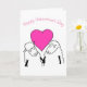 Carte Saint-Valentin avec une jolie image d'agneaux de caricature tenant la main sous un grand coeur d'amour rose. Personnalisez facilement cette carte en utilisant le texte modèle. La carte dit "Heureuse Sainte-Valentin".