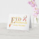Une carte de voeux design pour l'Aïd, "Across the Miles". avec un contour de lettrage décoratif aux effets or et rempli de motifs islamiques aux couleurs vives. La couverture de l'accueil est : 'Aïd Moubarak. De l'autre côté des kilomètres ! ' Il y a une lanterne aux couleurs vives dans le coin inférieur gauche, suspendue sous la lettre "E" et une lune à motifs et une étoile dans le coin supérieur droit, avec deux lanternes supplémentaires et une étoile islamique suspendue de la lune. L'arrière - plan blanc sur le capot avant est légèrement texturé et le message intérieur est juste une suggestion que vous pouvez facilement changer ou supprimer si vous le souhaitez.