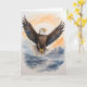Aigle royal majestueux avec les ailes déployées haut au-dessus de la mer. Carte de vœux vierge pour anniversaire, anniversaire de mariage, nouveau bébé, merci, condoléances, etc.