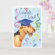 Félicitez votre diplômé préféré avec un cadeau avec un heureux diplômé d'Airedale Terrier portant un mortier au milieu d'une flûte de confettis.