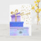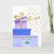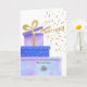 Rappelez aux clients, aux employés et aux partenaires d'affaires que vous pensez à eux avec notre Carte d'Anniversaire de Logo Personnalisé Happy. Doté d'une aquarelle originale de trois boîtes-cadeaux violettes et bleues avec des éléments en faux or et des confettis saupoudrées de la boîte supérieure, avec texte Joyeux anniversaire. Veuillez noter que l'or dans cette conception est une impression couleur jaune bronze et n'est pas une véritable feuille d'or. Remplacez votre logo par votre logo personnalisé et ajoutez le texte avant et intérieur. Cette carte chaleureuse et amusante fera sourire n'importe qui. Servez-vous de modèle pour votre personnalisation en ligne facile.