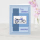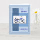 Un moto bleu sur un arrière - plan bleu abstrait. Le front dit "Joyeux anniversaire à ....... ajoutez un nom ici". Une belle carte pour un passionné de moto.