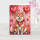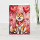 Carte Akita Inu Valentine Dog Sitting with Hearts Red