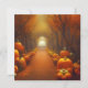 Belle carte postale d'art numérique rendue par l'IA avec une allée de citrouilles colorées dans une forêt d'automne. Personnalisez avec votre propre message d'automne / de Thanksgiving au dos.