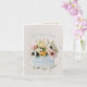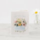 Cette belle carte Get Well comporte une photo d'un masque médical avec un bouquet sucré de pavots blancs et roses et des fleurs de ranunculus. Au-dessus du bouquet en bleu incurvé, il est écrit "Get Well Bientôt" en majuscules. L'intérieur de la carte a un arrière - plan d'aquarelle bleu clair sur la gauche et un arrière - plan d'aquarelle crème vieilli sur la droite.