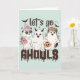 trois fantômes habillés de fleurs et de costumes avec les mots "Allons-y les goules"