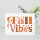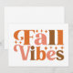 Ce design automnal élégant et vibrant présente la phrase "Fall Vibes" dans une police audacieuse et rétro qui dégage une énergie chaleureuse et accueillante. Le texte est présenté dans un mélange ludique de couleurs automnales, comprenant des oranges riches, des roses doux et des bruns chauds, capturant parfaitement l'essence de la saison. Autour du texte, de petites étincelles en forme d'étoiles ajoutent une touche de fantaisie et de magie, renforçant l'atmosphère festive générale du design. Les grandes lettres épaisses aux courbes douces donnent au design un attrait vintage et contemporain.