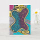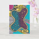 Il s'agit d'une carte de voeux d'anniversaire joyeux et vous pouvez la personnaliser avec votre propre salutation et nom. Il est décoré d'un stylo et d'une encre abstraite, ressemblant à un amibe, aux courbes et cercles fluides, dans les tons rose chaud et bleu turquoise, et contrastant les rayures arrière - plans. C'est curieux, lumineux et gai. L'oeuvre est originale, et disponible uniquement dans l'Art d'être Beth.