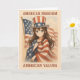 Cette carte allie style anime vintage et fierté patriotique, avec une fille joyeuse enveloppée dans le drapeau américain et portant un casquette étoilé, serti sur un fond de rouge, blanc et bleu. Le front met en évidence les valeurs et les libertés durables qui définissent la nation, tandis que l'intérieur offre un espace pour personnaliser votre message - que vous vouliez célébrer la résilience, l'espoir, ou les idéaux de liberté et de justice. Parfait pour tous ceux qui apprécient un point de vue moderne et stimulant sur l'esprit américain, cette carte est un moyen unique de partager votre appréciation pour les principes qui nous unissent tous.