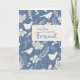 Carte d'anniversaire pour un ami spécial présente un design motif d'oiseaux et de fleurs en bleu et crème, et un sentiment profond, "Avec amour à un ami spécial."