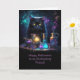 Chat noir avec potion magique Bonne carte Halloween pour un ami! De jolies couleurs et une atmosphère mystique