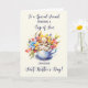 Célébrez la première fête des mères d’un ami avec une carte aussi joyeuse et vivante que cette nouvelle saison de sa vie. Un ours en peluche chéri se tient niché à l'intérieur d'une tasse remplie de fleurs vives et multicolores, dressée contre un arrière - plan jaune beurré. Ce design animé et chaleureux reflète le bonheur et l’amour qu’elle apporte à la maternité. Une belle façon de l'honorer et le lien doux qu'elle partage maintenant avec son petit.