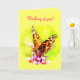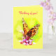 Cette carte d'amitié est une célébration colorée de la vie! Un papillon américain de dame jaune doré, orange, brun et blanc est perché sur une jolie fleur magenta verbena. L'arrière - plan lumineux brille de lumière. D'autres papillons sont éparpillés à l'intérieur. Vous pouvez customiser le texte en fonction de vos besoins.