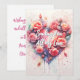 Exprimez votre amour avec cette superbe carte de vœux plate ! Avec un cœur composé de roses aquarelles vibrantes et de motifs complexes, elle est parfaite pour toutes les occasions. Le fond dégradé pastel ajoute une touche fantaisiste. Le texte de la carte, « Je vous envoie tout mon amour », est écrit dans une police de caractères cursive élégante et fluide, et est entièrement personnalisable pour s'adapter à toutes les occasions. Personnalisez le texte au verso et téléchargez-le instantanément pour un choix sincère et pratique.