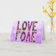 La carte de vœux « Je t'aime » remplie de fleurs, de arcs-en-ciel et de papillons, de jolies couleurs violettes et roses. Cette carte convient pour toutes les occasions romantiques comme un anniversaire ou la Saint-Valentin.