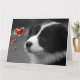 Dis à un amoureux des chiens "Je t'aime" de la manière la plus adorable qui soit avec cette carte super mignonne de chiot Border Collie avec des cœurs rouges et dorés et un texte personnalisable. Disponible en 3 tailles. Image du chiot exclusive à Zazzle.