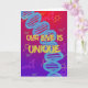 Exprimez l'unicité de votre histoire d'amour improbable avec cette carte colorée représentant une double hélice d'ADN, parsemée de dopamine, d'ocytocine et de sérotonine - trois des neurotransmetteurs les plus associés à l'amour !