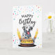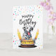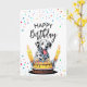 Un Dalmatien soufflant des bougies sur un gâteau d'anniversaire, idéal pour une illustration sur le thème de l'anniversaire.