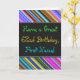 Cette carte de voeux amusante, colorée et fantaisiste à thème d'anniversaire présente un voeu d'anniversaire chaleureux comme "Ayez un grand 62e anniversaire, prénom!" sur le devant. Le nom sur le devant peut être personnalisé. Il y a aussi des bandes multicolores en haut et en bas de l'avant. L'intérieur comporte un message d'anniversaire qui peut être customisé. Une carte de voeux comme celle-ci pourrait être une façon amusante d'offrir des voeux d'anniversaire à quelqu'un qui célèbre son soixante-deuxième anniversaire. [~Z0000269]