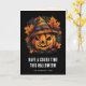 Regardez cette carte super cool Halloween ! Il a cet adorable citrouille qui balaye un casquette sorcier - comme la vie de la fête éffrayante. Et juste en dessous, il y a cette phrase géniale qui dit, "Prenez une heure de Gourd cet Halloween." C'est comme un tournoi de jeu complet, vous invitant à faire une explosion et à profiter de tout le plaisir parfumé citrouille cette Halloween!